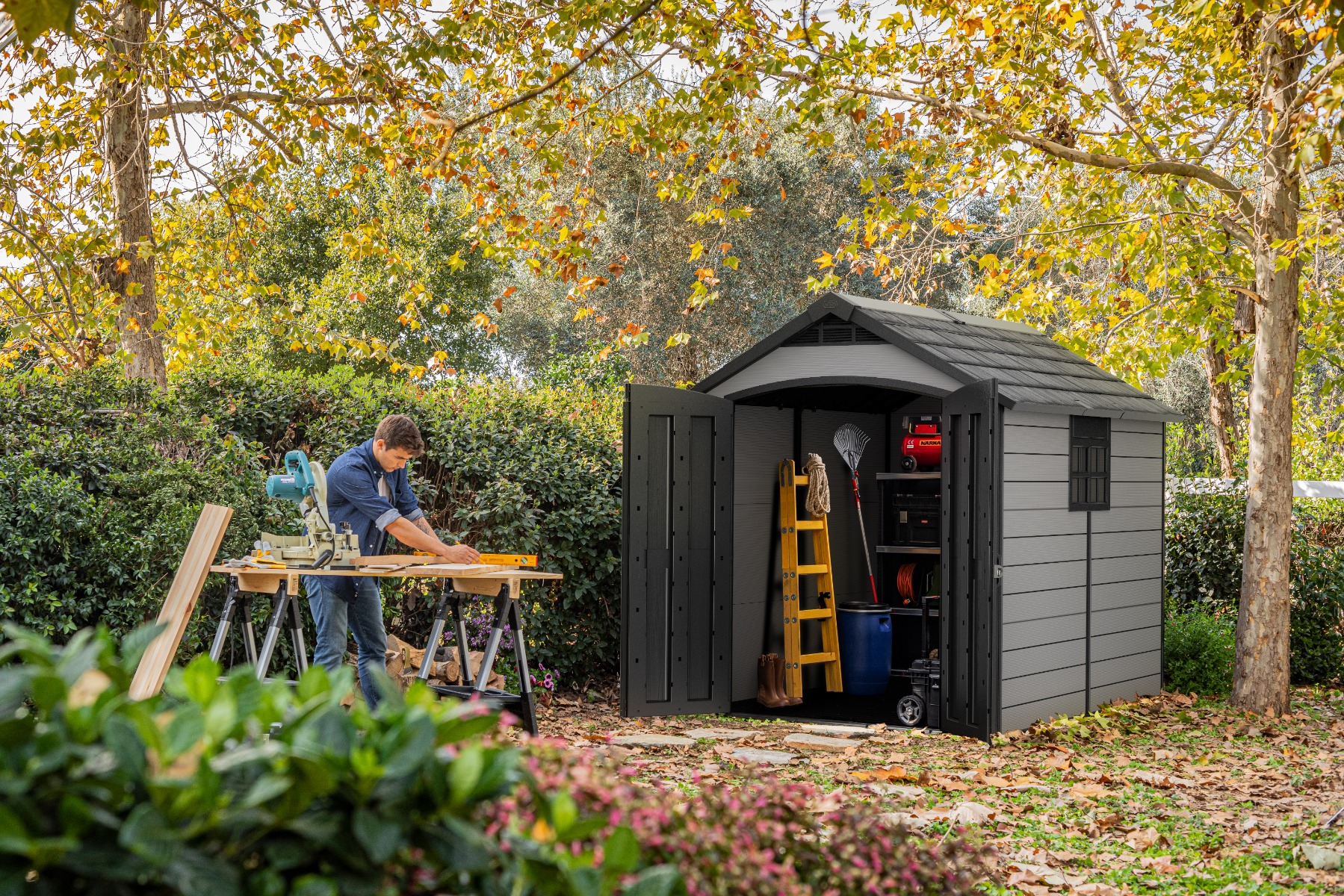 Do domčeka sa bez problémov zmestí nielen náradie, ale aj záhradný nábytok, kvetináče a sezónne vybavenie. Jeho funkčný interiér umožňuje jednoduchý pohyb a prispôsobenie rozmiestnenia vlastným potrebám.