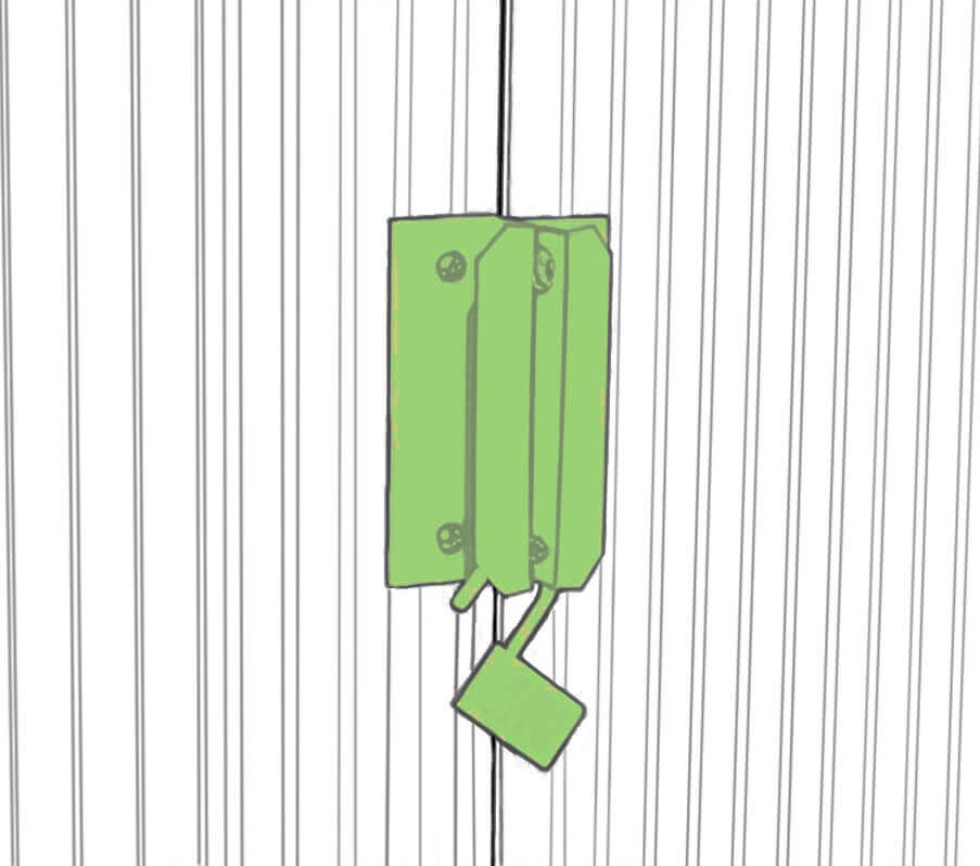 Model OREGON ponúka dvere s kľučkami, ktoré umožňujú montáž visiaceho zámku alebo zámku, čo je riešenie, ktoré zvyšuje ochranu vnútra domčeka na náradie, ale upozorňujeme, že visiaci zámok nie je súčasťou štandardnej súpravy.