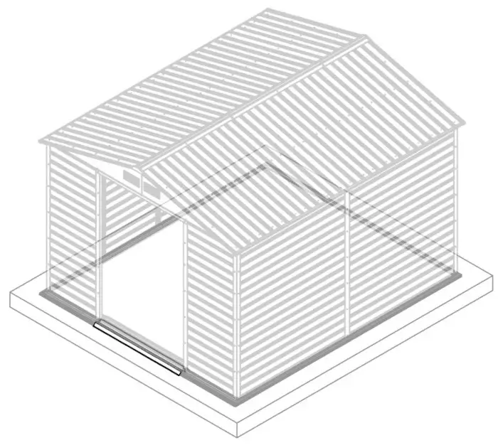 Pred začatím montáže sa uistite, že betónová podlaha je rovná a úplne suchá. Montáž domčeka na nerovnom povrchu môže viesť k nestabilite konštrukcie. Kotvy do zeme nie sú súčasťou dodávky.