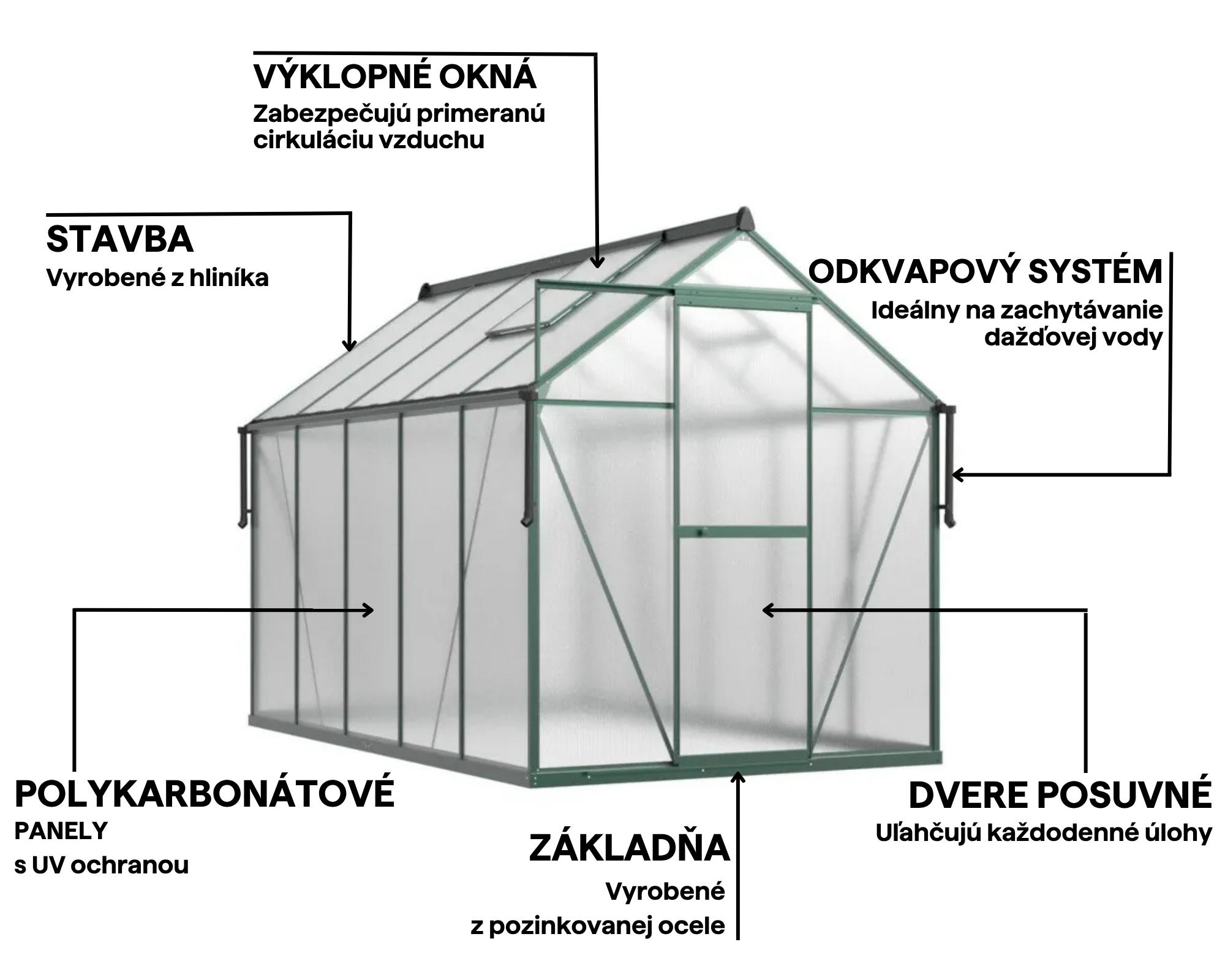 Polykarbonátový skleník Slide-In NEW 183 x 303 cm Dark Green – Cultivo