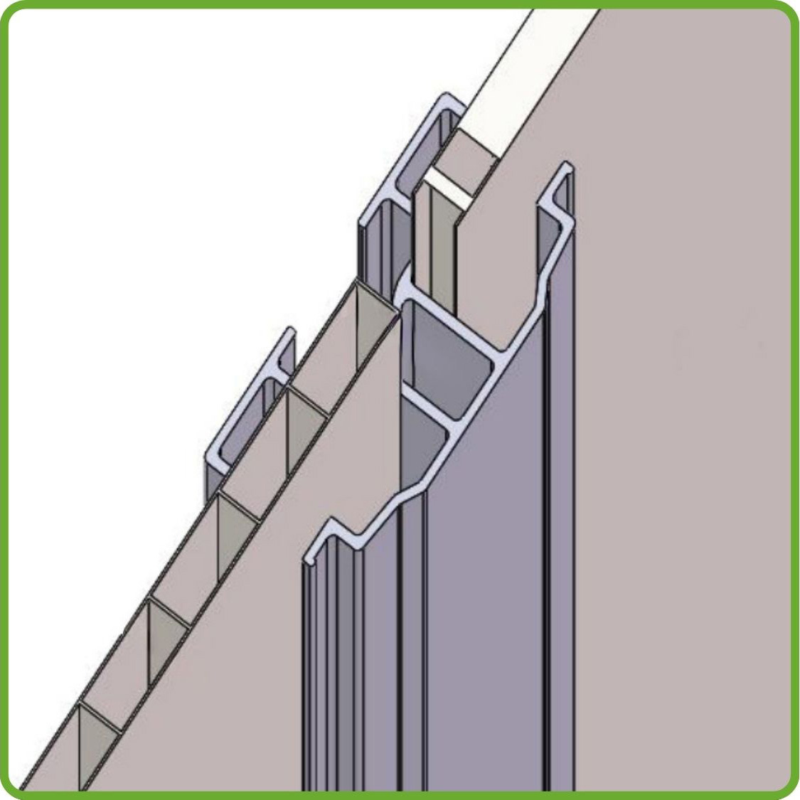 Pokročilý systém Slide-In umožňuje inštaláciu polykarbonátových panelov bez použitia kovových spôn, ktoré sa zasúvajú priamo do rámu konštrukcie, čo zaručuje vysokú stabilitu a odolnosť skleníka. Vďaka tomu môžu skleníky rýchlo zmontovať aj začiatočníci. Panely sú bezpečne upevnené v ráme, čo zvyšuje odolnosť voči vetru a nepriaznivým poveternostným podmienkam, a absencia voľných prvkov znižuje riziko poškodenia v priebehu času. Presné fungovanie systému je ukázané vo videu. Upozorňujeme, že skleník musí byť umiestnený najmenej 1,5 metra od budovy, aby bola zabezpečená správna inštalácia a ventilácia.
