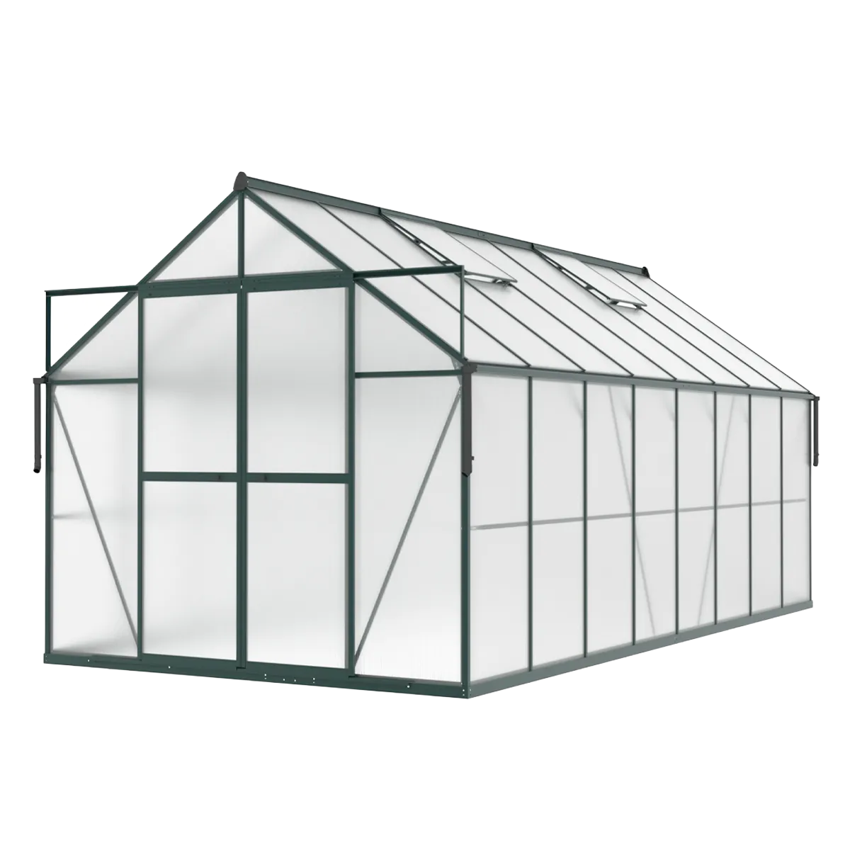 Táto verzia skleníka používa 6 mm hrubý polykarbonát s dvojitou UV vrstvou na ochranu plodín pred nadmerným slnečným žiarením.