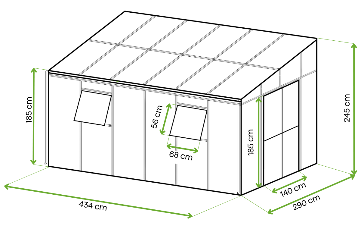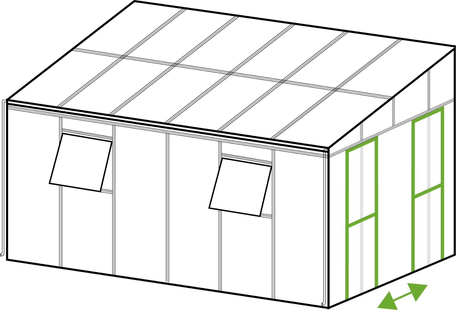 Oranžéria SOHO Black bola vybavená posuvnými dverami, ktoré umožňujú pohodlný vstup bez obmedzenia priestoru okolo konštrukcie. Posuvný mechanizmus umožňuje plynulé a ľahké otváranie, čo výrazne uľahčuje používanie oranžérie aj v priestoroch s obmedzeným priestorom.
