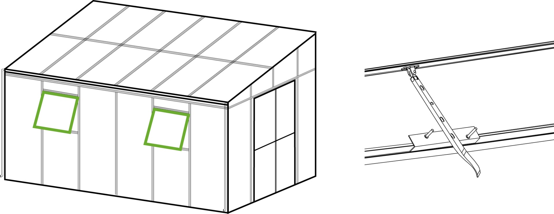 Okná v oranžérii SOHO Black boli vybavené výklopnými oknami, ktoré umožňujú presné nastavenie vetrania. Vďaka tomu môžete plne ovládať prúdenie vzduchu, čím sa zabezpečia pohodlné podmienky na používanie a ideálna mikroklíma pre rastliny