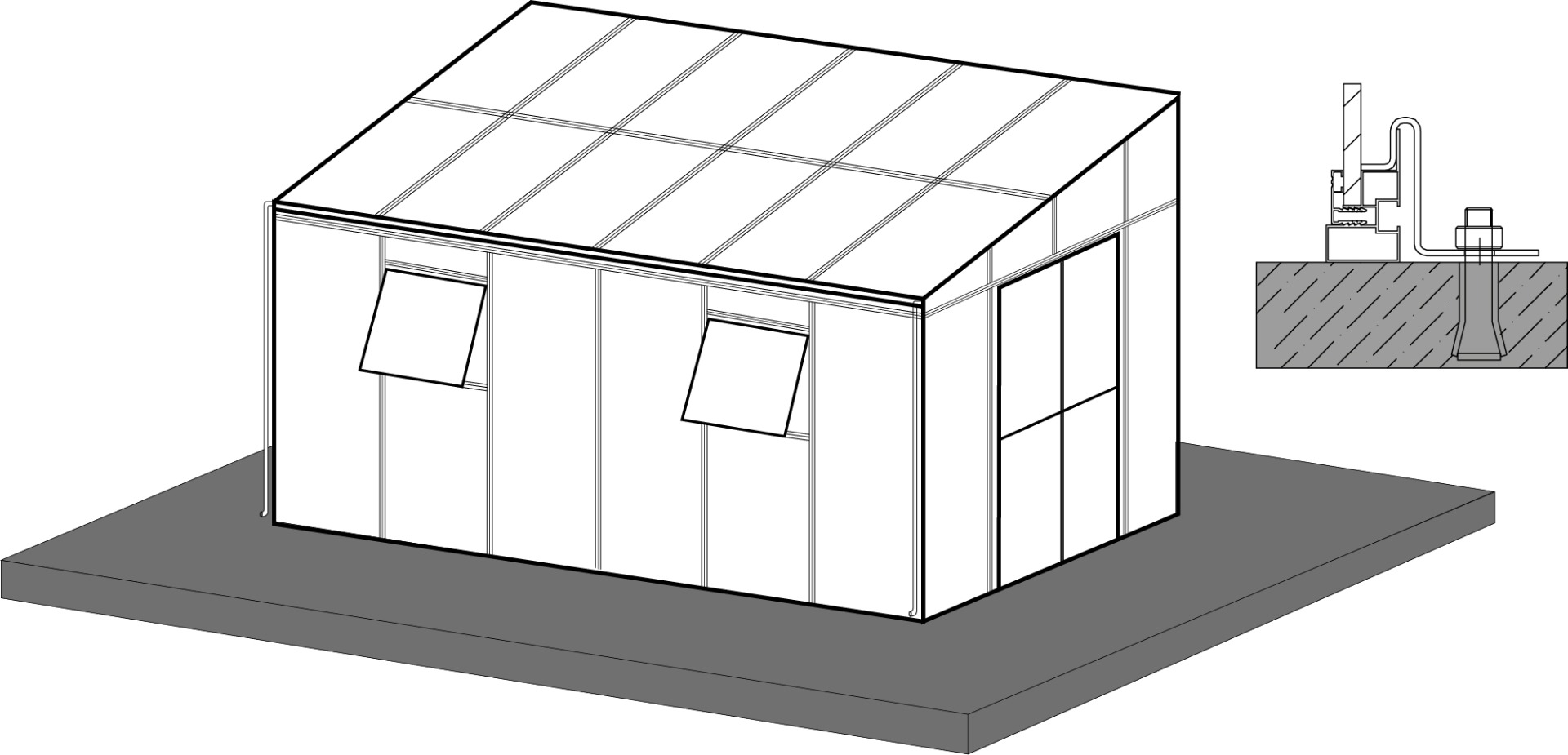 Montáž oranžérie SOHO Black 434x290 cm SOLID PC + sklo by mala prebiehať na rovnom, stabilnom podklade, ktorý zaručí odolnosť a stabilitu konštrukcie na dlhé roky. Na uľahčenie správnej montáže prvkov sa odporúča, aby sa montáž vykonávala za priaznivých poveternostných podmienok - najlepšie v suchý a bezveterný deň.